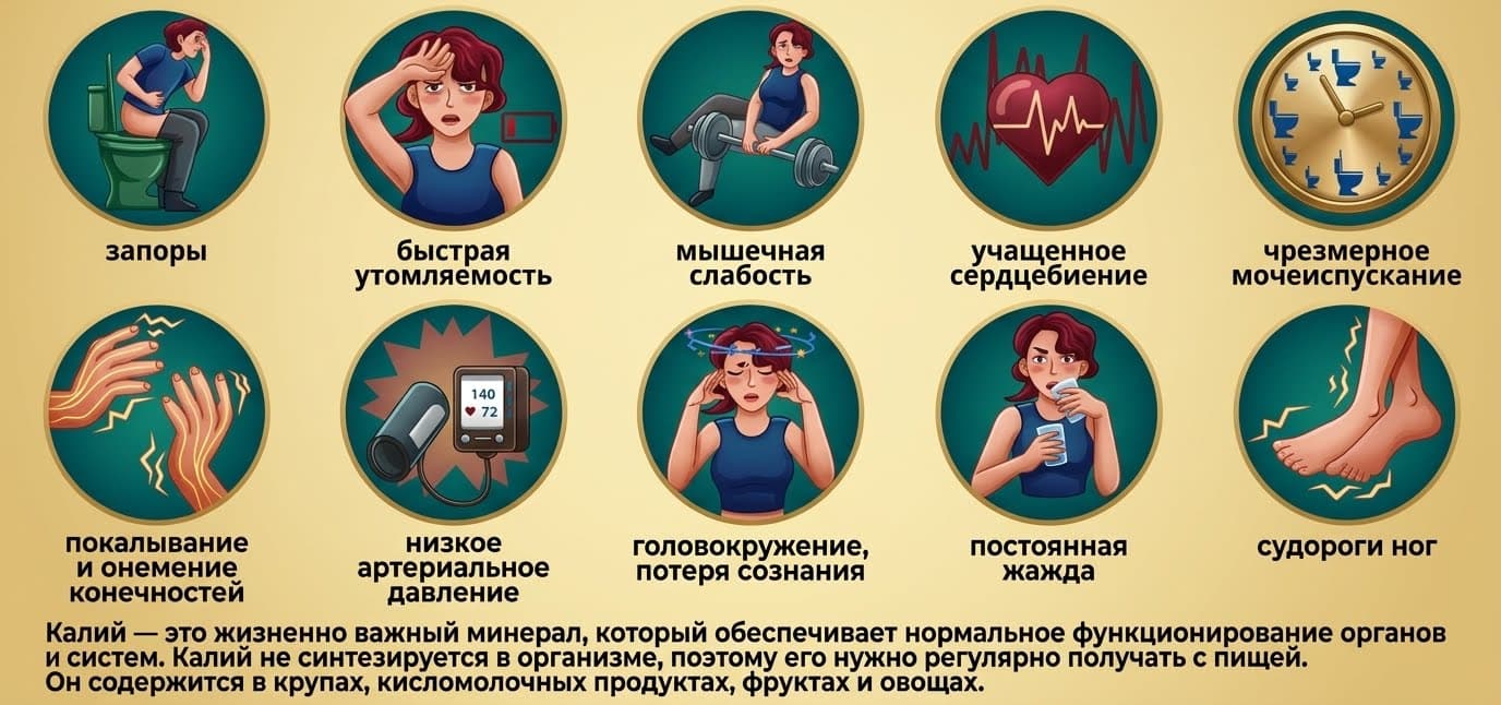 Признаки нехватки калия (гипокалиемия)
