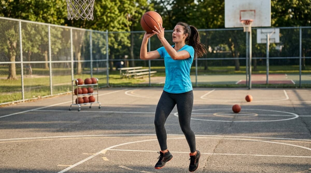 - Форм-шутинг у кольца (1–2 метра) — только механика, без прыжка, 50–100 повторений в день